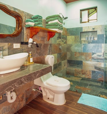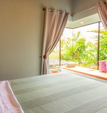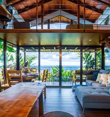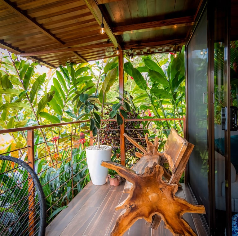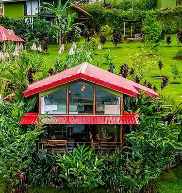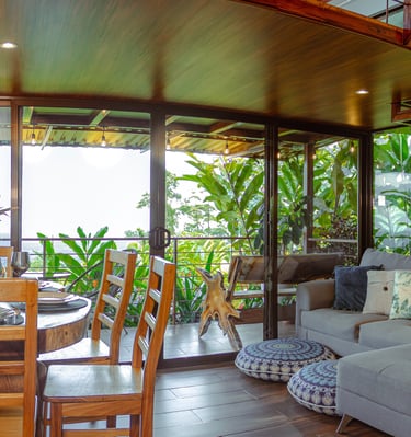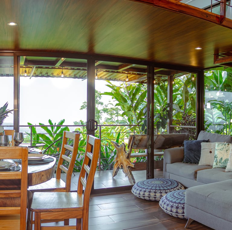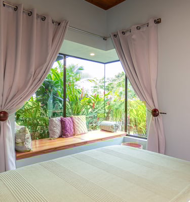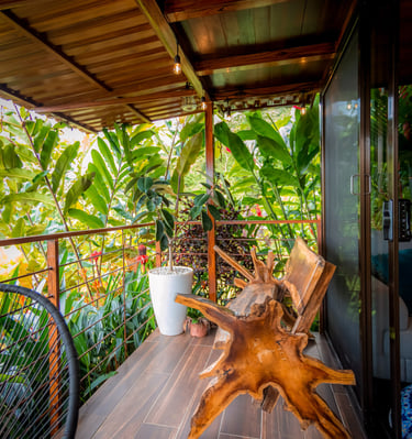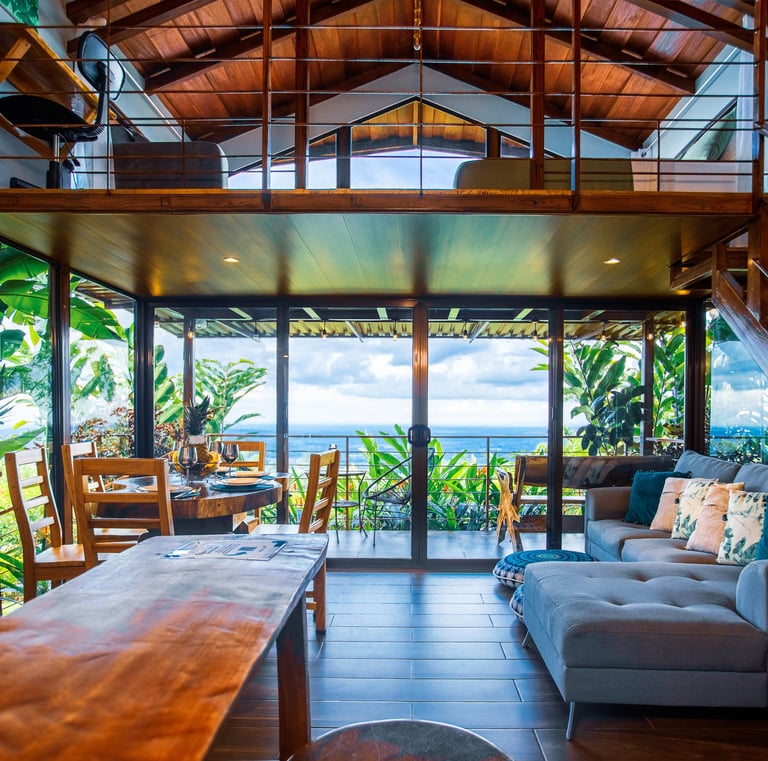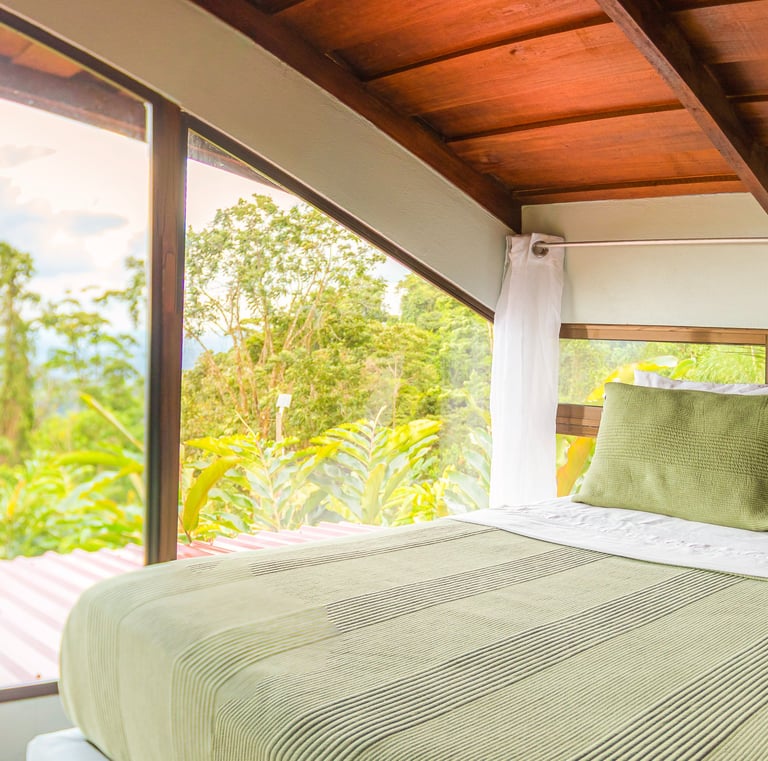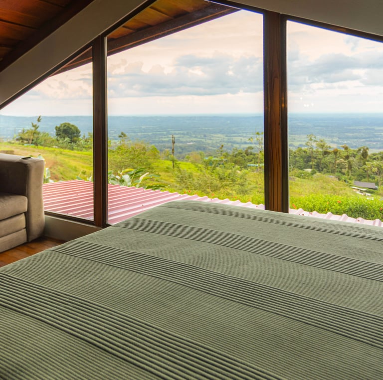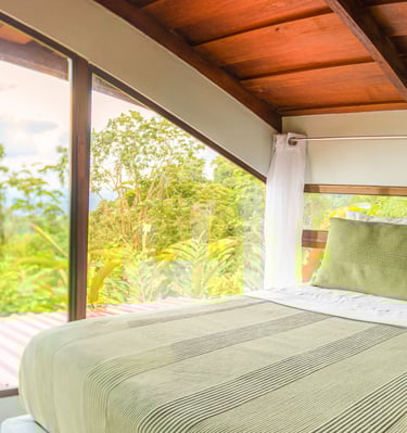 Nestled amidst stunning gardens, La Perezosa cabin invites you to immerse yourself in nature's splendor. With expansive windows, the cabin seamlessly blends the indoors with the breathtaking beauty of the rainforest and cityscape. Enjoy majestic panoramic views from the balcony, or relax in the inspiring loft and cozy window benches. No matter the time of day, the views are nothing short of spectacular.